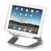 Tablet Riser, 8 3/8 x 5 3/8 x 4 5/8, White/Gray. Features an innovative design that elevates your tablet 3" above desktop for enhanced viewing comfort. Displays tablet in portrait and landscape orientations. Supports tablet devices up to 1/2” thick. No tools required for assembly. Look for coordinating I-Spire Series™ products from Fellowes®. Stand Type: Tablet; Width: 8 3/8"; Depth: 5 3/8"; Maximum Height: 4 5/8".