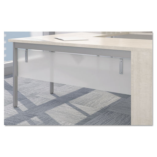 Dual-sided acrylic panel with polished edges attaches to under-surface table support channel for added privacy. Painted steel brackets and hardware...