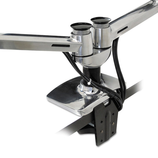 This dual side-by-side arm easily accommodates two LCD screens, perfectly aligning them on a sleek, streamlined base. Create a fully adjustable sid...
