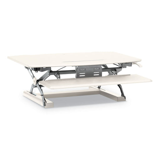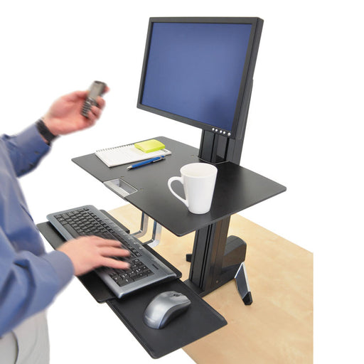 The spacious work surface and separate keyboard tray sits on top of your existing table or desk. Easily adjust your desk height while you work with...