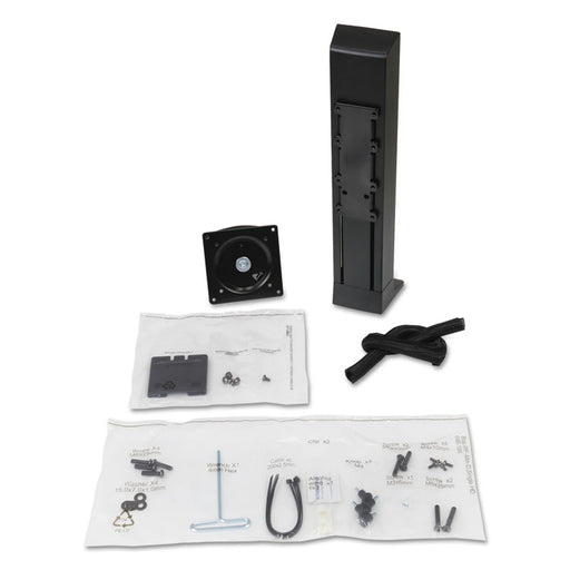 Height adjustable with +/-15° tilt and 360° swivel. Color: Black; Workstation Type: Straight; Height (+/- Desktop): +0"/-5 3/4" Below; Keyboard Tra...