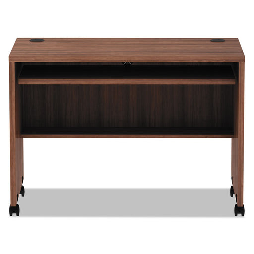 Commercial grade laminate work surface and side panels are water-, scratch- and stain-resistant. Charcoal accent line under work surface adds a dis...