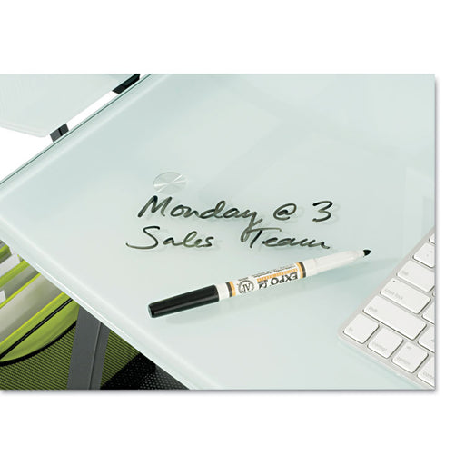 Unique tempered glass worksurface and shelves accept a dry erase marker to write important numbers, notes and messages. Worksurface easily accommod...