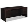 10500 Series Bow Front Desk, 3/4 Height Double Pedestals, 72w x 36d x 29.5h, Harvest. Hard-working, good-looking and built to survive a lifetime of overtime. Thermally-fused laminate top and end panels are abrasion- and stain-resistant. Drawers operate on ball bearing suspensions; file drawers extend fully and accommodate letter or legal size hanging files, box drawers extend three-quarters. HON® "One Key" core removable locks make re-keying quick and easy. 10 1/2" conference overhang provides kneespace for guests. Full-height modesty panel for privacy. Color: Harvest; Color Family: Oak; Pedestal Count: 2; Top Shape: Bow Front.