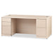10700 Double Pedestal Desk with Full Height Pedestals, 72w x 36d x 29.5h, Natural Maple. A modular management solution that combines stylish profiles and elegant accents with top-grade fit and finish. Abrasion- and stain-resistant high-pressure laminate with elegant hardwood trim. Drawers ride on steel ball bearing suspensions; file drawer extends fully and accommodates letter and legal size hanging files, box drawers extend three-quarters. HON® “One Key" core removable locks make re-keying quick and easy. 10-1/2" conference overhang provides added kneespace for guests. Full-height modesty panel for privacy. Color: Natural Maple; Color Family: Maple; Pedestal Count: 2; Top Shape: Rectangular.