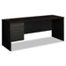 38000 Series Left Pedestal Credenza, 72w x 24d x 29.5h, Mahogany/Charcoal. Steel frame with steel-reinforced, high-pressure laminate top for superior rigidity and strength. Drawers operate on heavy-duty steel ball bearing suspensions. High-sided, full-extension file drawer accepts hanging file folders; box drawer extends three-quarters. HON® “One Key” core removable locks. Cord management with ports and hidden channels. Color: Mahogany; Charcoal; Color Family: Mahogany; Pedestal Count: 1; Drawer Configuration: Left: Box/File.