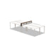 - Full-width trough below outlets keeps cords organized and off the desk surface.