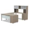 e5 Series Executive U-Workstation, 72w x 96d x 62h, Summer SuedeHard-working workstation includes 72 x 30 desk with acrylic modesty panel, 42" bridge with acrylic modesty panel, 72 x 24 credenza, two box/box/file pedestals, 72" overhead cabinet with frosted glass doors, vertical organizer and horizontal organizer.