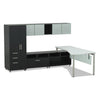 e5 Series Single L-Workstation, 72w x 85d x 29.5h, White/RavenIncludes 72 x 30 desk, 36 x 18 file storage cabinet and 36 x 18 open storage cabinet.