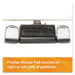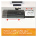 Knob Adjust Keyboard Tray With Highly Adjustable Platform, Black. Highly adjustable keyboard tray features lateral adjustment, 5 1/2" height range, 360° swivel and +15°/-15° tilt. Easy height and tilt adjustment; just loosen knob, position tray as desired, then re-tighten knob. Independent articulating mouse platform can be mounted right or left. It's perfect for shallow workstations where mounting depth is at least 17 1/2". Leatherette gel wrist rests with antimicrobial product protection. Precise™ mousing surface extends battery life. Color: Black; Capacity (Weight): 70 lbs.; Workstation Type: Straight; Height (+/- Desktop): +1 1/2"/-4 1/2".