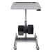 - Provides plenty of leg room when sitting and a foot rest when standing.