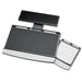 Office Suites Adjustable Keyboard Manager, 21.25w x 10d, Black/Silver. Single knob adjusts tray height and tilt up to +0°/-10°. Swivels left or right and swings back underneath work surface for storage. Sliding arm lets you pull keyboard closer. Mouse tray can be mounted on left- or right-hand side. Constructed of solid 2mm thick steel for lasting performance. Memory foam wrist rests. Color: Black/Silver; Workstation Type: Curved; Diagonal; Straight; Height (+/- Desktop): +1 1/8"/-4 3/4"; Keyboard Tray Dimensions (W x D): 21.25 x 10".