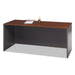 Series C Collection 72W Credenza Shell, Hansen Cherry. Series C Collection 72W Credenza Shell with open leg table design provides flexible solutions. Constructed with 100% thermally fused laminate for durability and superior resistance to scratches and stains. Integrated wire management located in desktop grommets conceals cables. Add the 72W Hutch for storage or as a stand-alone desk component in a limited space. Accepts 2- or 3-Drawer Mobile Pedestals for under the desk file storage. Includes adjustable levelers for uneven floors. Color: Hansen Cherry; Color Family: Cherry; Overall Width: 71.13"; Depth Maximum: 23.38".