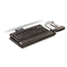 Sit/Stand Easy Adjust Keyboard Tray, Highly Adjustable Platform,, Black. Increase comfort and productivity by placing your keyboard and mouse at a proper level. This keyboard has a sit/stand easy adjust arm that provides height adjustment to 10" above mounting surface and 4" below mounting surface allowing you to alternate between sitting and standing positions. Tilt is adjusted by dialing tilt knob to desired angle. Sturdy platform has proprietary lateral adjustments for getting the keyboard exactly where you want it. Articulating mousing platform adjusts in all directions, tilts forward and back, and can be mounted on the right or left side of the keyboard platform. Includes leatherette gel wrist rest with antimicrobial product protection for keyboard and mouse and a Precise™ Mouse Pad that can be placed to the left or right of the keyboard. Color: Black; Capacity (Weight): 70 lbs.; Workstation Type: 90° Corner; Curved; Diagonal; Straight; Height (+/- Desktop): +10"/-4".