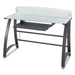 Xpressions 47" Computer Desk, 47" x 23" x 37", Frosted/Black. Unique tempered glass worksurface and back panel accept a dry erase marker to write important numbers, notes and messages. Worksurface easily accommodates a laptop computer plus back panel can be used to hold loose papers, mail, binders or books. Durable powder coated steel frame. Leveling glides help compensate for uneven flooring. Color: Frosted/Black; Color Family: White; Top Material: Tempered Glass; Width Maximum: 47".