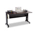 Mobile Computer Desk with Reversible Top, 53.5" x 28" x 30", Mahogany/Medium Oak/Black. Melamine top reverses during setup for a choice of mahogany or medium oak finish. Black steel base with full-width 6 3/4" deep storage shelf. 12" modesty panel for privacy. Dual wheel casters (two locking) for easy mobility. Cable routing cutouts for installation along a wall. Color: MahoganyMedium Oak/Black; Color Family: Mahogany; Top Shape: Rectangular; Top Material: Melamine.