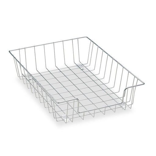 Wire Tray with contemporary design that organizes documents and files. Stack trays with posts, sold separately. Steel tray is 100% recyclable. 10"w...