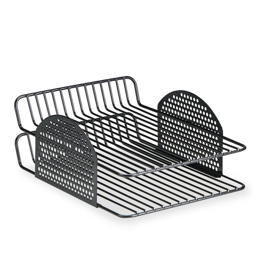 Double Letter Tray with unique punched metal and wire design brings style and organization to the desktop. Front loading trays with paper stops hol...
