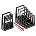 Adjustable File Rack, 5 Sections, Letter Size Files, 8" x 11.5" x 10.5", Black. Make the most of your desktop workspace with this Adjustable File Rack that expands and contracts depending on your needs. When fully collapsed, our file rack can save up to 64% of your desk space. And unlike regular desktop file racks, the slots on this rack adapt to fit different size files. Also, each slot has a flat bottom to keep folders from falling through and the step style lets you keep important files visible and easy to access. With this innovative file rack you can save space and keep your desktop clear of clutter. Number of Compartments: 5; For File Size: Letter; Load Orientation: Top/Side; Color(s): Black.