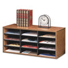 Particle Board Desktop Sorter, 12 Compartments, 29 x 11.88 x 12.9, Dove Gray. Fast, easy assembly. Sturdy corrugated divider system with high-strength frame includes plastic channels and labels. For letter size materials. Compartment Size: 9w x 11 5/8d x 2 5/8h. Literature Sorter Type: Open Front; Number of Compartments: 12; Compartment Size: 9w x 11.63d x 2.63h; Letter; Material(s): Melamine Laminated Particle Board.