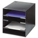 Steel Desktop Sorter, Four Compartments, Steel, 11 x 12 x 10, Black. Made of heavy gauge steel construction, these units can be stacked up to three high. Organizes literature, files, stationery. Features label holder on front. Four Compartments—Easily adjust the three shelves in 1" increments. Literature Sorter Type: Open Front; Number of Compartments: 4; Material(s): Steel; Color(s): Black.