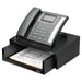Designer Suites Telephone Stand, 13 x 9 1/8 x 4 3/8, Black Pearl. Angled platform keeps phone visible and accessible. Front ledge holds phone securely in place. Raised design has 3" storage space to hold books, binders, notes or Designer Suites™ letter tray (sold separately). Stand Type: Telephone; Width: 13"; Depth: 9.13"; Maximum Height: 4.38".