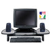 Flat Panel Monitor Stand with SmartFit, 34" x 14" x 2.5" to 4.5", Black, Supports 35 lbs. Monitor height adjustment. Two side shelves are also independently adjustable. Accommodates keyboard storage, speakers and cables. Rubber feet and top design prevent slipping. Supports flat-panel monitors up to 21" and 35 lbs. Adjusts from 2 1/2" to 4 1/2". Stand Type: Monitor; Width: 34"; Depth: 14"; Maximum Height: 4 1/2".