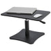 DC230 Adjustable Laptop Stand, 21" x 13" x 12" to 15.75", Black, Supports 20 lbs. Standing while working on your laptop or tablet becomes a breeze. Simple design and sturdy wood and steel construction, this ergonomic option allows for maximum workspace with a small footprint. The scratch-resistant PVC coated worksurface allows for the space to work comfortably and accommodate a mouse, a cup of coffee or a 4 x 6 notepad. With a lever directly under the work surface, adjusting the height is simple and smooth. The heavy-duty steel piston allows for height adjustments from 12" to 15 3/4" above the desk or tabletop. Note: Does not lower to a sitting position. Create a standing work station virtually anywhere that meets the demand of your busy day. Portable and easy to move. Stand Type: Laptop/Tablet; Width: 21"; Depth: 13"; Maximum Height: 15 3/4".