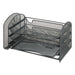 Mesh Desk Organizer, 1 Vertical/3 Horizontal Sections, Steel Mesh, 16.25 x 9 x 8, Black. Organizer helps you maximize desktop space. One vertical section holds file folders and binders. Three horizontal sliding trays accommodate any letter-size documents. Bottom tray may be removed and replaced with the mesh drawer organizer (3262BL), sold separately. Durable steel mesh construction. Desktop Supplies Organizer Type: Multipurpose; Number of Compartments: 4; Overall Width: 16.25"; Overall Depth: 9".