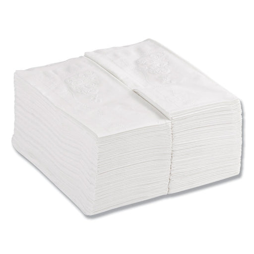 Perfect for business or home. Attractive embossed border on soft and strong napkin. Material(s): Paper; Color(s): White; Width: 17"; Depth: 14 63/1...