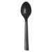 100% Recycled Content Spoon - 6" , 50/Pack, 20 Pack/Carton. Formulation offers strength and heat tolerance of up to 180ºF, comparable to conventional plastic. Excellent for hot food and liquids. Utensils Type: Spoon; Material(s): Polystyrene; Color(s): Black; Length: 6".