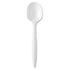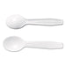 Medium-Weight Cutlery, Taster Spoon, White, 3", 3000/Carton. Stock up without breaking the bank when you choose this value-priced tableware. Medium-weight design provides near metal-ware-like performance. Reinforced at common break points to maximize durability. Utensils Type: Taster Spoon; Material(s): Plastic; Color(s): White; Grade: Mediumweight.