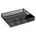 Metal Mesh Deep Desk Drawer Organizer, Six Compartments, 15.25 x 11.88 x 2.5, Black. Stylish organizer enhances your desk's appearance and coordinates with other mesh desk accessories. Deep bins provide extra-capacity storage so your desk stays organized. Two extra-long pen/pencil compartments mean no more jumbled writing supplies. Compartments: 6; Adjustable: No; Height: 2.5"; Width: 15.25".
