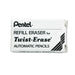 Eraser Refills for Pentel Side FX and Twist-Erase Pencils, Cylindrical Rod, White, 3/Tube