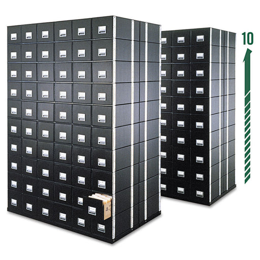 Stacks ten high. Store 80% more records in the same floor space. Steel framework interlocks vertically and horizontally to withstand the heaviest d...