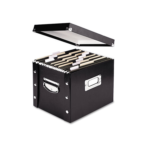 Filing is a snap with this easy-to-assemble unit. Heavy-duty metal snaps hold box together and provide strength. Accommodates hanging file folders....