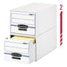 STOR/DRAWER Basic Space-Savings Storage Drawers, Letter Files, 14" x 25.5" x 11.5", White/Blue, 6/Carton. Stacks two high to save space. The higher the drawer system stacks, the more space, time and money you save. Reinforced front and back drawer panels for lasting strength. Multi-wall thickness on drawer sides and back improves durability. Reinforced plastic handle for easy drawer access. Box Type: File Storage; Strength: Medium-Duty; File Size Format: Letter; Width: 14".