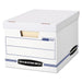 STOR/FILE Basic-Duty Storage Boxes, Letter/Legal Files, 12" x 16.25" x 10.5", White, 20/Carton. Lift-off lid ships attached to prevent lid loss, then tears off for use. Light-duty, basic set-up construction for moderate stacking or use with shelving. Box Type: Stackable File Storage; Box Style: Basic Set-Up; Strength: Standard-Duty; Capacity (Weight): 450 lb.