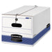 STOR/FILE Medium-Duty Strength Storage Boxes, Legal Files, 15.25" x 24.13" x 10.75", White/Blue, 12/CartonString & button closure keeps contents secure even if box is overturned.