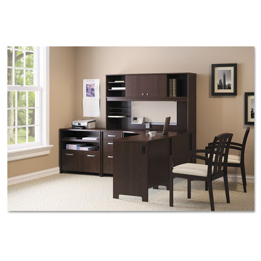 Durable melamine surfaces are dent- and scratch-resistant. Drawers operate on full-extension ball bearing slides and accommodate letter and legal s...