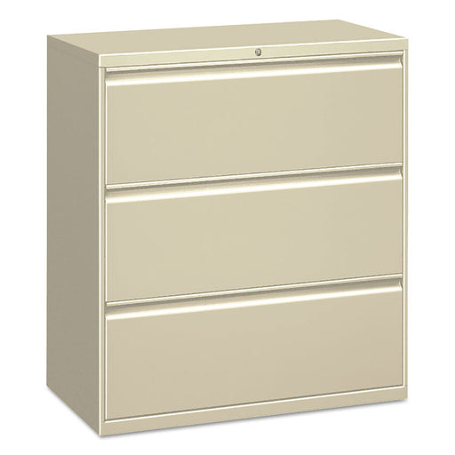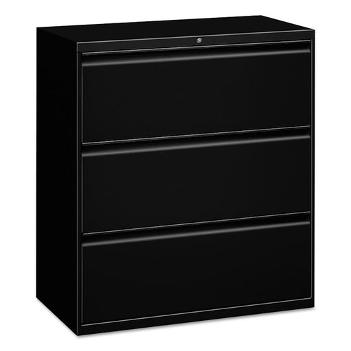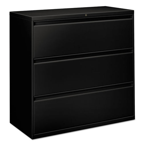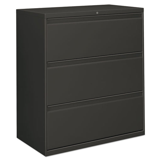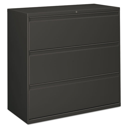 High-sided file drawer accommodates letter/legal filing. Counterweight prevents tipping. Visible easy-access casters, two locking. Steel ball beari...