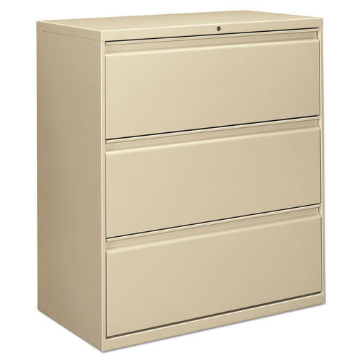 Drawers with side-to-side hang rails to accommodate letter/legal hanging files. Full drawer extension on steel ball bearing telescoping slide suspe...