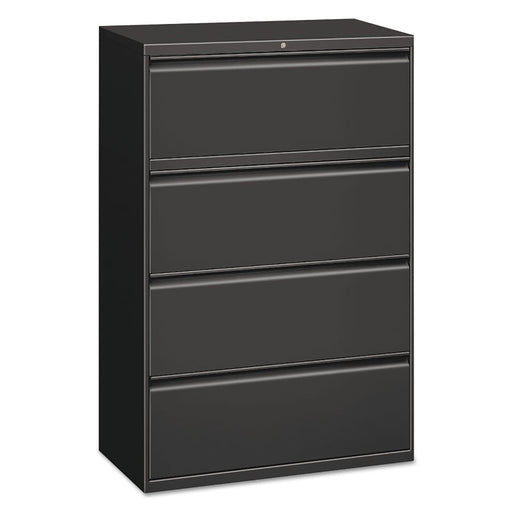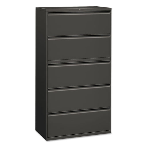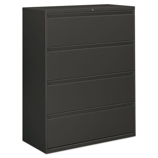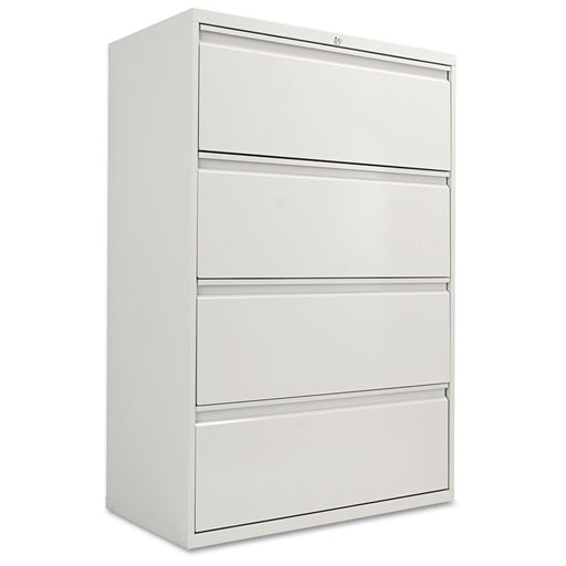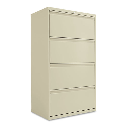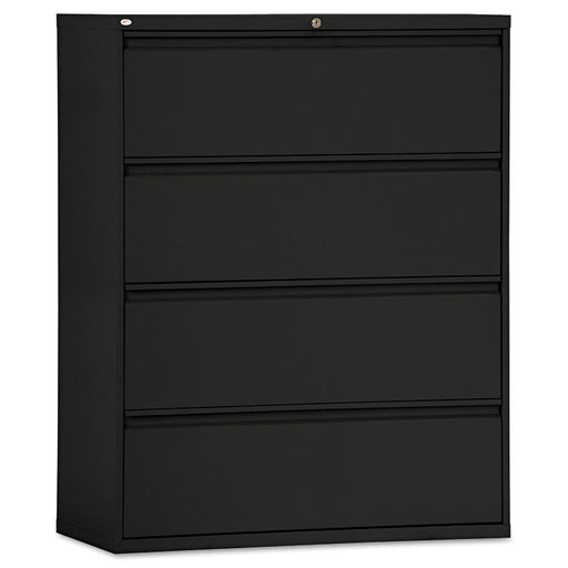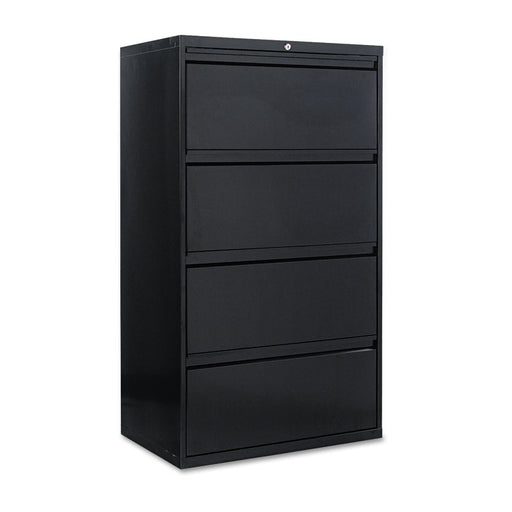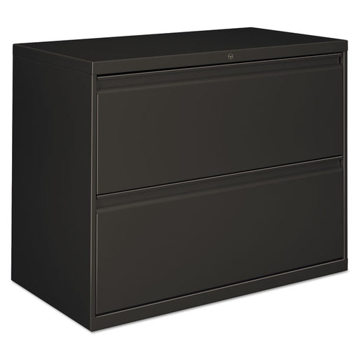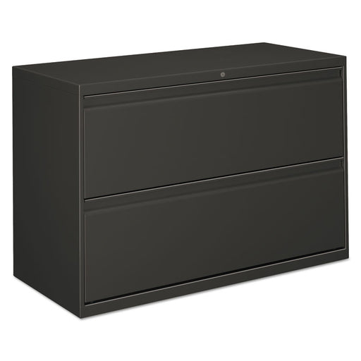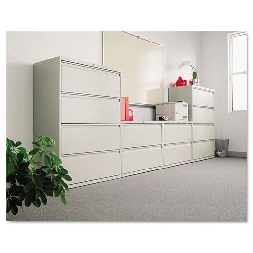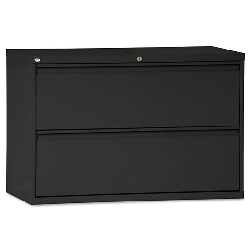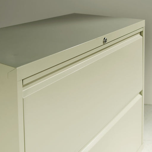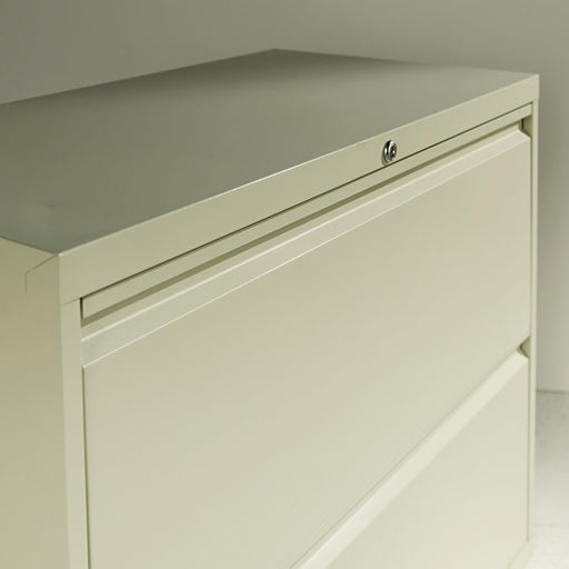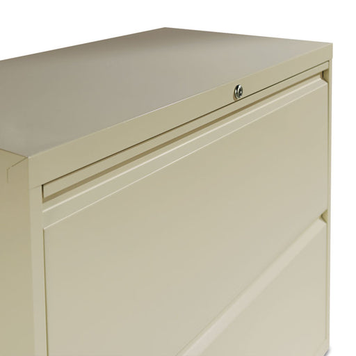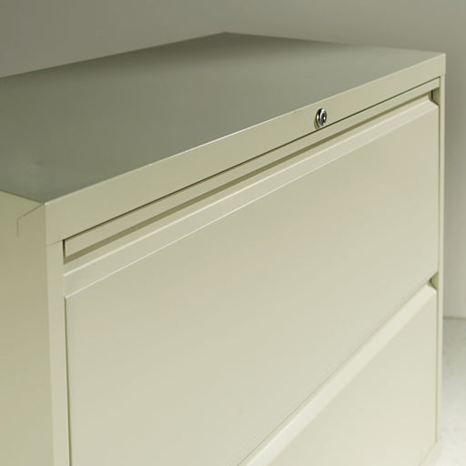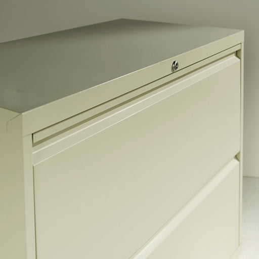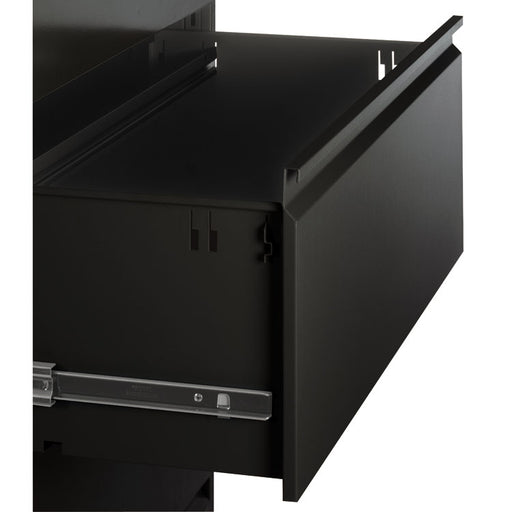 Drawers with side-to-side hang rails to accommodate letter/legal hanging files. Full drawer extension on steel ball bearing telescoping slide suspe...