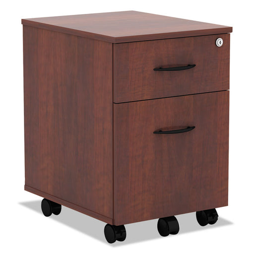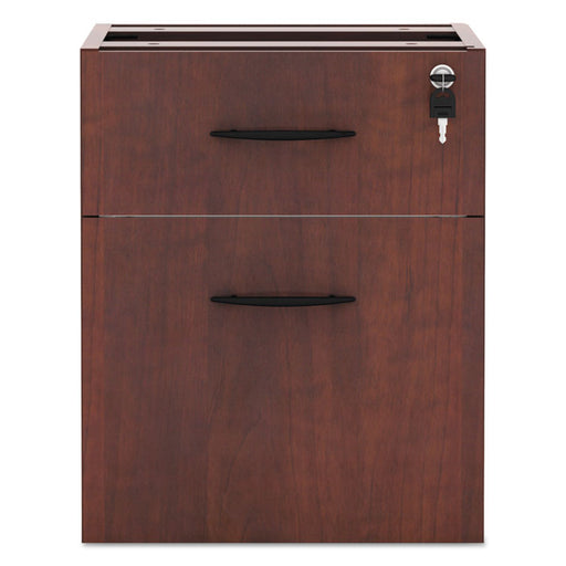 Sturdy woodgrain laminate mobile box file pedestal to store all your office necessities. Full-extension ball bearing slides on file drawer for easy...