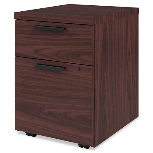 Durable abrasion- and stain-resistant laminate. Straight edges provide a streamlined look. Easy mobility on four 2" casters. Locking file drawer ex...