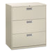 600 Series Three-Drawer Lateral File, 42w x 18d x 39.13h, PuttyCounterweight included, where applicable, to meet ANSI/BIFMA stability requirements.