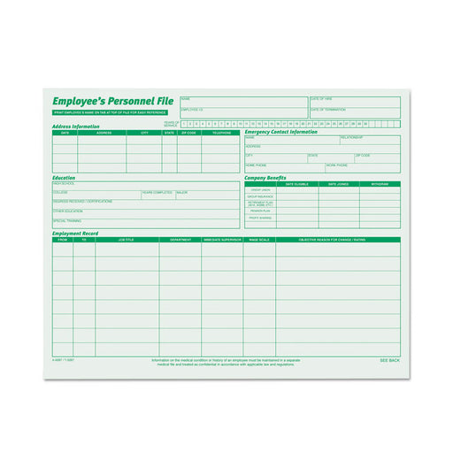 All you need to build a complete employee record. Update employee history and status on front, confidential material on back. Post Hiring Inquiry g...