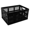 - Tough plastic crate can be stacked, even with heavy loads.