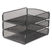 Onyx Desk Tray, 3 Sections, Letter Size Files, 9.25" x 11.75" x 8", Black. Steel mesh design with a durable powder coat finish to meet all organization needs. Keep documents organized and within easy reach while using minimal space. Three-Tray Set—Includes interlocking pins to connect trays. Number of Compartments: 3; For File Size: Letter; Load Orientation: Front; Color(s): Black.