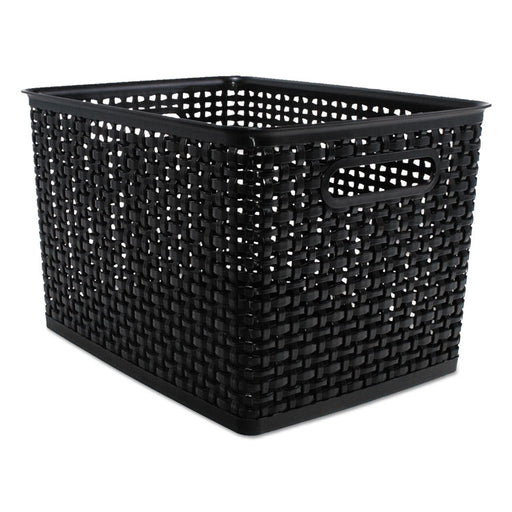 Attractive black baskets with woven design will get your workspace organized. Great for storing all sorts of items including CDs, DVDs, office supp...